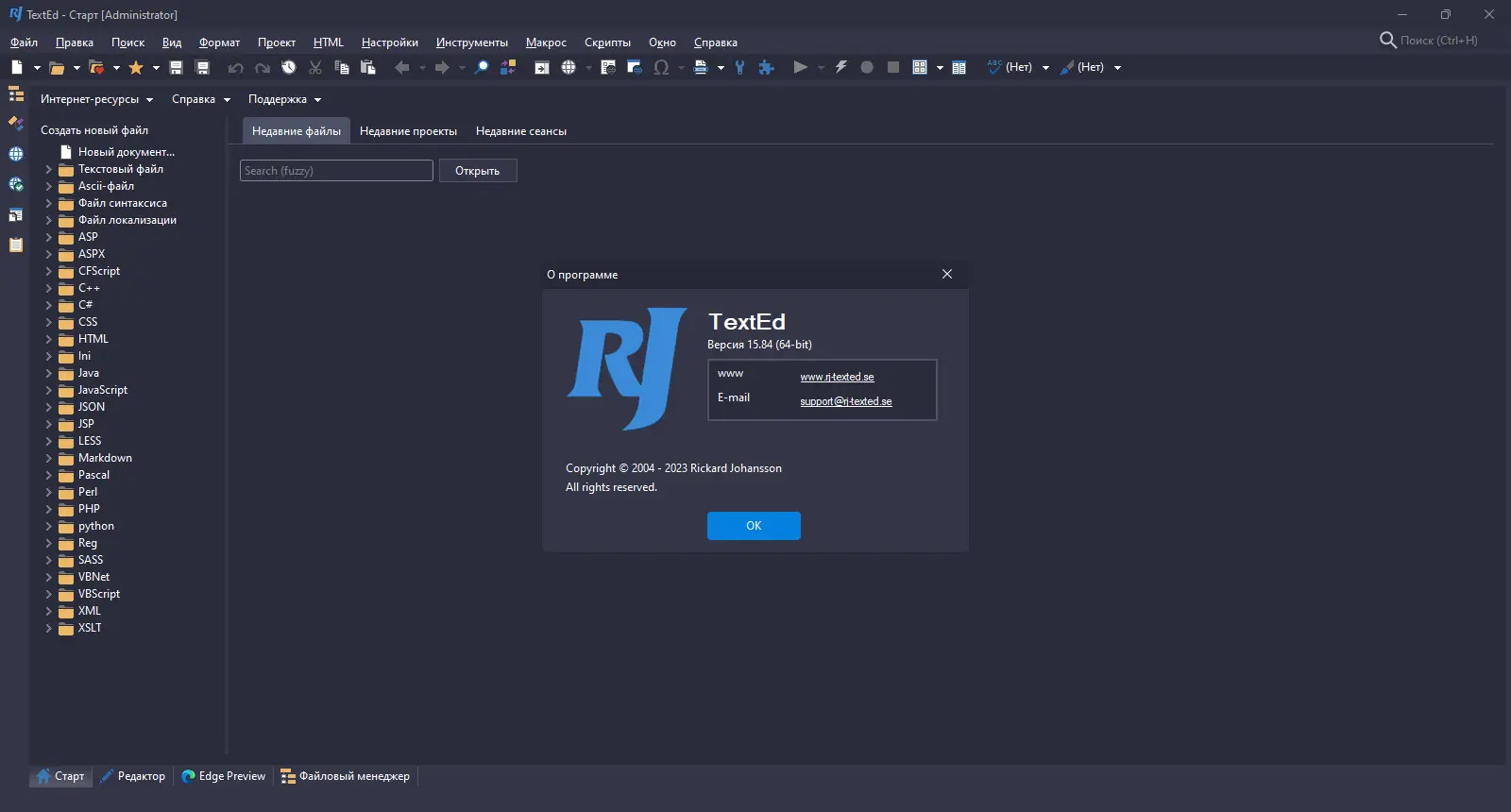RJ TextEd — это мощный и универсальный текстовый редактор, предназначенный для программистов и веб-разработчиков. Он обладает широким набором функций, включая подсветку синтаксиса, поддержку различных кодировок и инструменты для работы с HTML, CSS, JavaScript и PHP. Благодаря удобному интерфейсу и расширенным возможностям, программа значительно ускоряет процесс написания и редактирования кода, делая его более эффективным и комфортным.