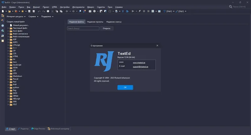 RJ TextEd объединяет все необходимые инструменты для профессиональной разработки и редактирования кода в одном приложении.