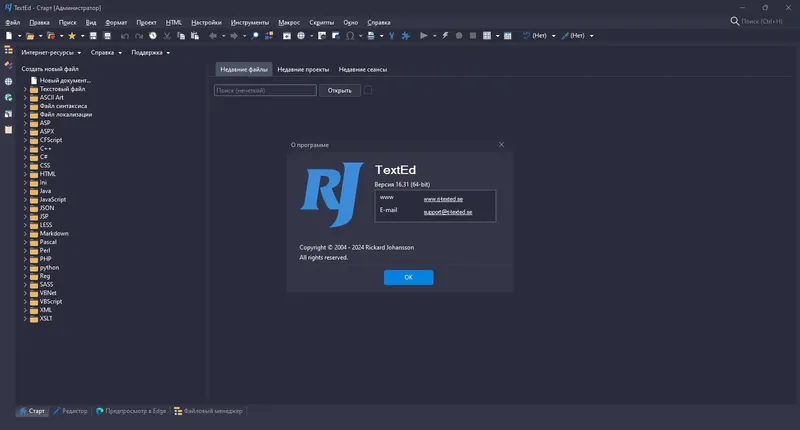 RJ TextEd — это мощный и универсальный текстовый редактор, специально разработанный для программистов и веб-разработчиков. Он предлагает широкий набор функций для работы с кодом, включая подсветку синтаксиса, поддержку различных кодировок и интеграцию с инструментами для верстки и разработки сайтов. Благодаря своему богатому функционалу, программа значительно упрощает процесс создания и редактирования HTML, CSS, JavaScript, PHP и других языков программирования.