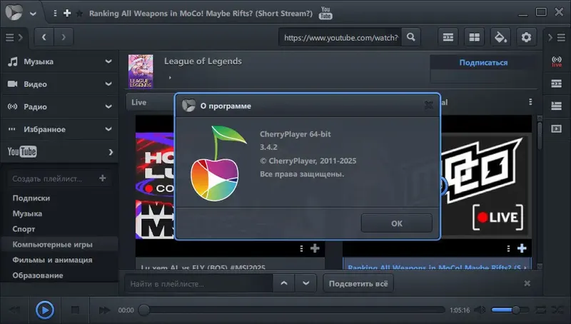 CherryPlayer — это универсальный медиаплеер, который объединяет все необходимые функции для комфортного воспроизведения мультимедиа и работы с онлайн-контентом.