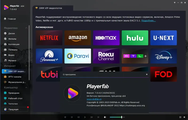 - Поддержка более сотни мультимедийных форматов и встроенных кодеков
