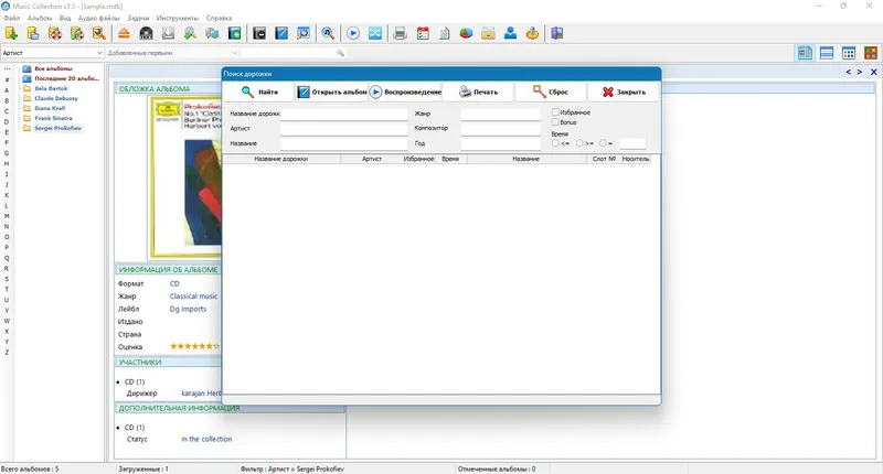 Music Collection — это универсальный проигрыватель и менеджер для создания собственной музыкальной коллекции на компьютере. Программа позволяет удобно организовать и систематизировать музыку, обеспечивая быстрый доступ к нужным трекам и альбомам. Благодаря возможности редактирования информации о композициях, а также загрузки данных из интернета, она становится незаменимым инструментом для любителей музыки и коллекционеров. Вся музыка аккуратно структурирована, что значительно упрощает поиск и управление большой базой аудиофайлов.