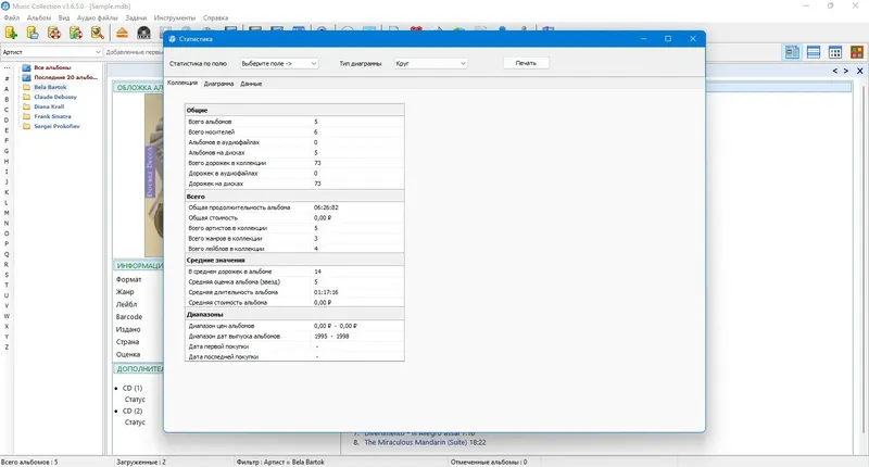 Music Collection — это универсальный проигрыватель и менеджер для создания собственной музыкальной коллекции на компьютере. Программа позволяет удобно организовать и редактировать информацию о ваших композициях, альбомах и исполнителях. Благодаря возможности загрузки данных из интернета и простому поиску, она значительно ускоряет управление музыкальным каталогом и помогает сохранить порядок среди ваших файлов. Этот софт подойдет как для любителей, так и для тех, кто хочет систематизировать свою музыку и иметь быстрый доступ к нужным трекам.