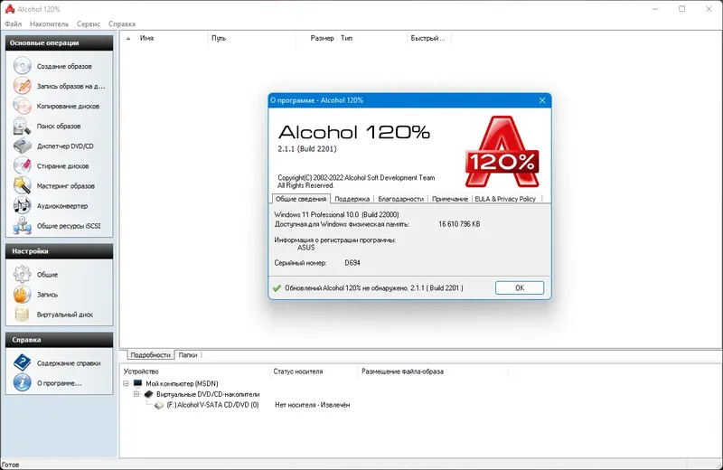 Alcohol 120% — мощный эмулятор CD/DVD дисков, позволяющий создавать виртуальные образы и работать с ними так же, как с физическими носителями. Эта программа подходит для пользователей, которым необходимо быстро и удобно запускать диски без необходимости вставлять физические приводы. Благодаря поддержке множества форматов и высокой скорости передачи данных, Alcohol 120% становится незаменимым инструментом для работы с образами, копирования защищенных дисков и организации виртуальных приводов.