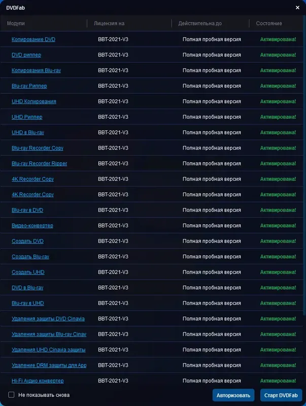 DVDFab представляет собой мощный инструмент для работы с различными форматами видеоданных, включая DVD, Blu-ray и HD-DVD. Она обеспечивает быстрый и качественный прожиг, копирование и конвертацию файлов, а также возможность создавать резервные копии защищённых дисков с помощью удаление всех известных видов защиты, таких как CSS, RCE, Macrovision и Sony ARccOS. Программа обладает расширенными функциями, включая создание видео enhancer AI, увеличение разрешения и интеграцию с виртуальным драйвером для работы с образами. Благодаря универсальности и высокой скорости работы, DVDFab является незаменимым помощником при обработке мультимедийных файлов.