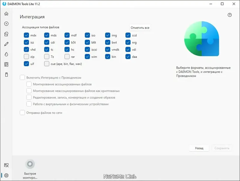 - Поддержка популярных форматов образов дисков, таких как ISO, MDX, MDS и NRG.