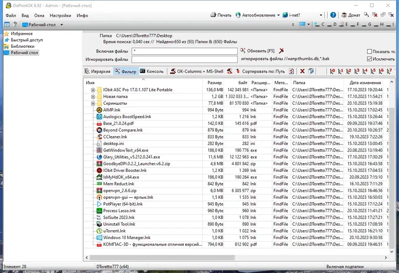 - Быстрый анализ файловой системы для оценки занимаемого места.