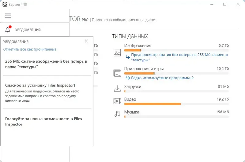 Оптимизация хранения данных и освобождение места — основные преимущества Files Inspector.