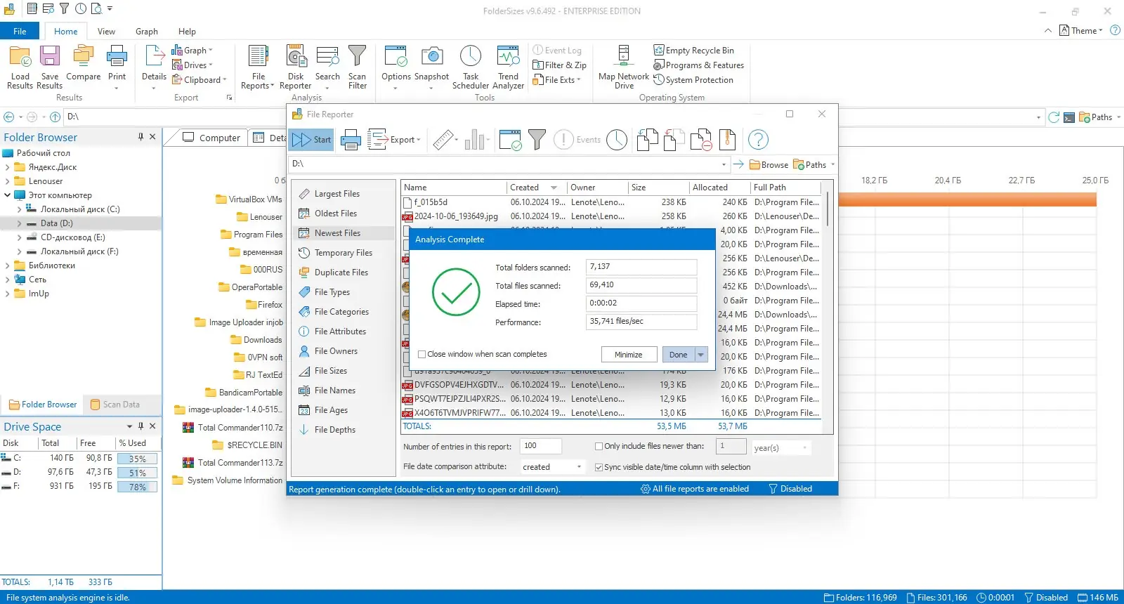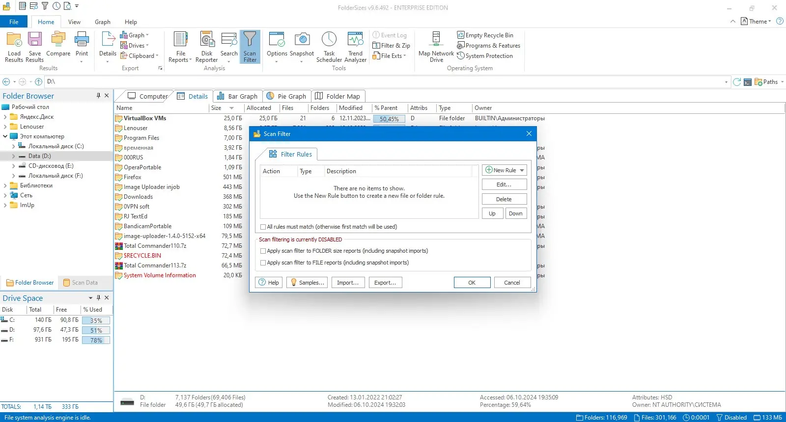 Использование FolderSizes помогает эффективно управлять дисковым пространством, предотвращая его переполнение и повышая общую производительность системы.