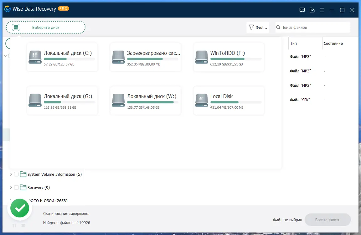 - Поддержка сетевых и съемных дисков