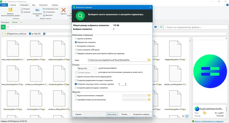 UltraSearch — это мощная программа для быстрого поиска файлов и папок на жестком диске с операционной системой Windows. Она работает напрямую с файловой таблицей NTFS, что обеспечивает высокую скорость поиска без необходимости индексирования. Особенно удобна в работе профессионалам и тем, кто часто ищет файлы по маскам, регулярным выражениям или другим критериям. Вариант portable позволяет запускать программу без установки и сохранять её настройки на переносных носителях.