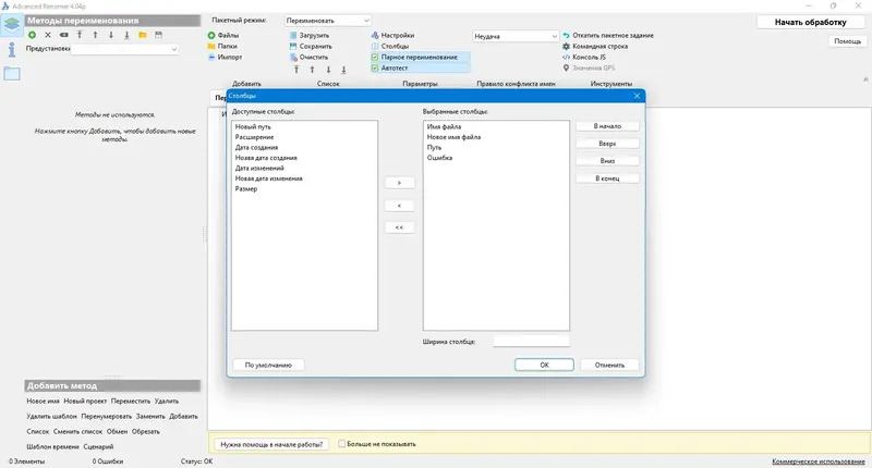 - Массовое переименование с использованием нескольких методов одновременно