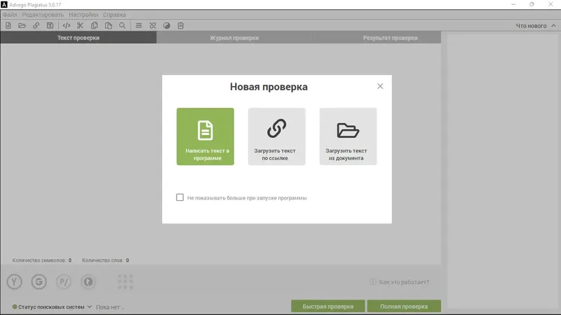 Advego Plagiatus — это удобный редактор для проверки текста на плагиат онлайн. Его интуитивный интерфейс позволяет легко загружать документы и проверять их на наличие заимствований. Программа подходит для работы с различными типами текстов, предоставляя подробную статистику по совпадениям и источникам. Благодаря современным алгоритмам анализа, она обеспечивает точные результаты и помогает повысить уникальность контента.