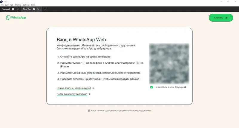 Для начала работы с Altus необходимо скачать установочный файл с официальной страницы и запустить его. После установки программа автоматически предложит авторизоваться через WhatsApp, сканировав QR-код. Можно добавить несколько учетных записей, переключаясь между ними в интерфейсе. Настройки тем и уведомлений доступны через меню программы, что позволяет адаптировать внешний вид и функциональность под свои предпочтения.