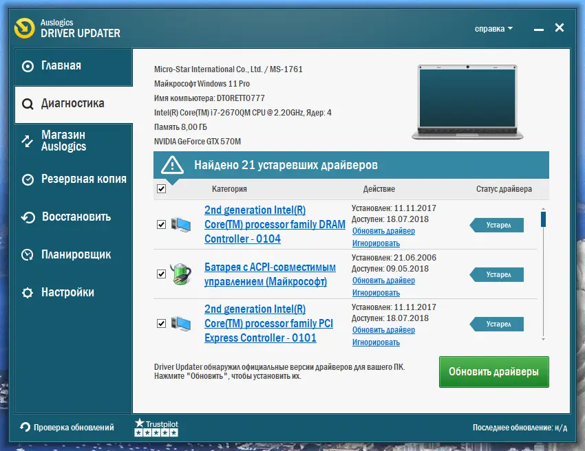 Обновление драйверов повышает производительность компьютера и предотвращает сбои оборудования.