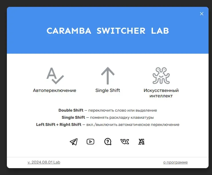 Caramba Switcher — это универсальный автоматический переключатель раскладки клавиатуры, который поддерживает работу с русским, английским и немецким языками. Эта программа предназначена для повышения комфорта при вводе текста и исключения ошибок, связанных с неправильной раскладкой. В дополнение, версия Caramba Switcher Lab позволяет добровольцам участвовать в развитии проекта, присылая слова-исключения и обучая модель для более точного определения языка.