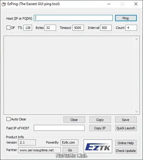 Для использования EzPing необходимо запустить программу и ввести целевой IP-адрес или домен. После этого можно настроить параметры, такие как тайм-аут, интервал между пакетами, количество отправляемых сообщений, а также установить флаг DF или изменить TTL. После настройки достаточно нажать кнопку запуска, и программа начнет отправлять ICMP-запросы, отображая результаты в окне вывода. В процессе выполнения можно копировать, сохранять и очищать вывод для дальнейшего анализа. Также доступна функция быстрого получения IP-адреса домена и его открытия в браузере, что ускоряет диагностику и проверку доступности ресурсов сети.