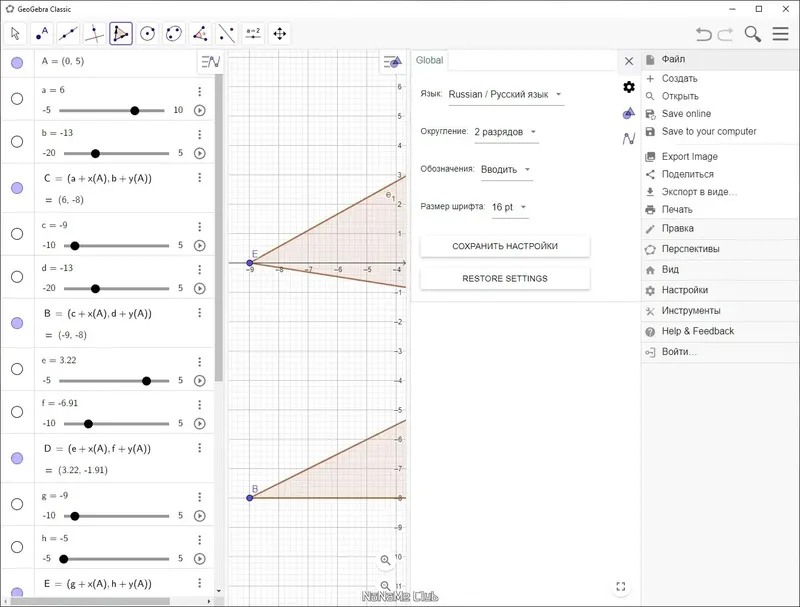 GeoGebra — это мощное и универсальное программное обеспечение, объединяющее возможности для работы с геометрией, алгеброй и аналитикой в одном интерфейсе. Оно позволяет легко строить графики функций, моделировать фигуры и выполнять вычисления с использованием различных математических инструментов. Особенно ценным является наличие функций для построения кривых, конических сечений и 3D-моделирования, что расширяет возможности изучения математики как на плоскости, так и в пространстве. Программа идеально подходит для обучения в школе и вузе, а также для проведения научных исследований и разработки проектов в области математики, физики и инженерии. Удобство использования и богатство функций делают GeoGebra популярным выбором среди педагогов и студентов по всему миру, особенно для тех, кто ищет классические решения и современные инструменты в одном пакете.