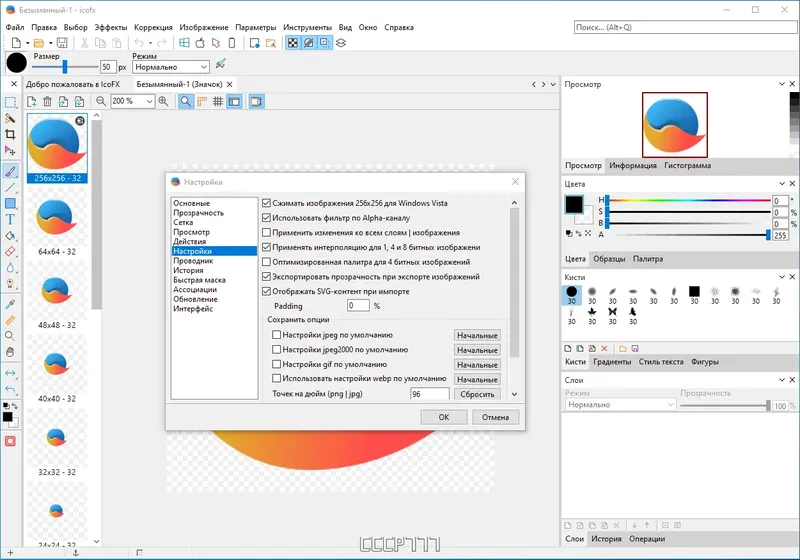 - Импорт, экспорт и извлечение иконок из различных форматов
