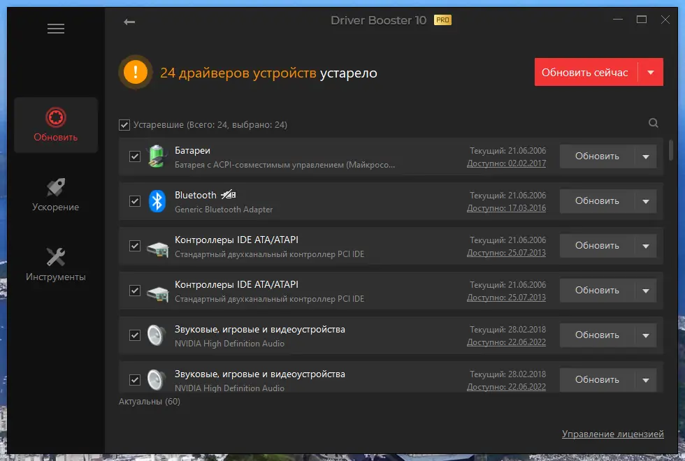- Автоматическая проверка устаревших драйверов