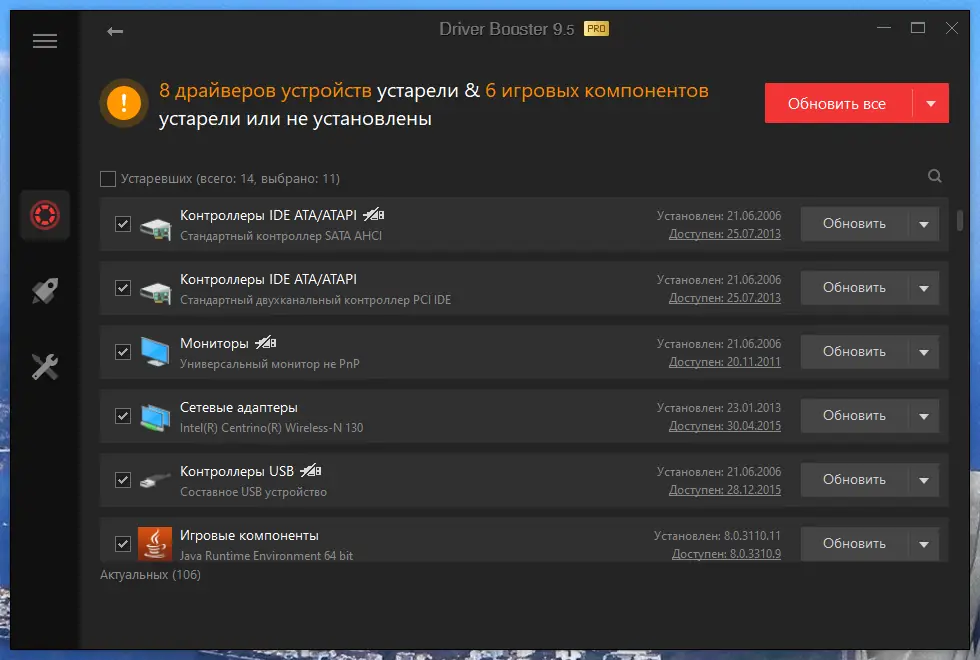 - Обновление драйверов одним щелчком для повышения эффективности системы