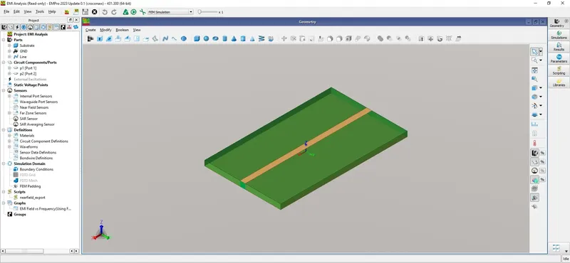 Для начала работы с EMPro необходимо выбрать методику расчета — FEM или FDTD — в зависимости от поставленных задач. После этого можно импортировать CAD-модели устройств или создавать их непосредственно внутри программы с помощью встроенных инструментов. В процессе моделирования пользователь может задавать параметры материалов, условий окружающей среды и взаимодействия с объектами, а также выполнять анализ электромагнитных полей, температурных изменений и стандартных показателей безопасности. Для тестирования антенн и устройств доступны функции проверки соответствия стандартам SAR, HAC и MIMO. Весь процесс сопровождается визуализацией результатов, что позволяет быстро выявлять и устранять недостатки проектных решений. Готовые модели можно экспортировать в форматы, совместимые с другими системами проектирования, для дальнейшего использования и производства.