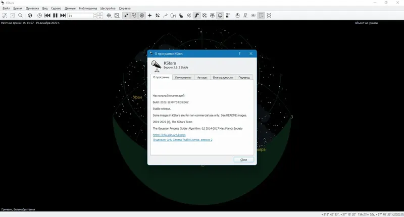 KStars — это бесплатное и открытое кроссплатформенное программное обеспечение для астрономии, которое позволяет моделировать ночное небо с высокой точностью. Она работает на различных операционных системах и предоставляет пользователям возможность наблюдать за звездами, планетами и другими космическими объектами в реальном времени или в историческом и будущем временных диапазонах. Благодаря богатому функционалу, KStars подходит как для начинающих любителей, так и для профессиональных астрономов, обеспечивая широкий спектр инструментов для исследования вселенной.