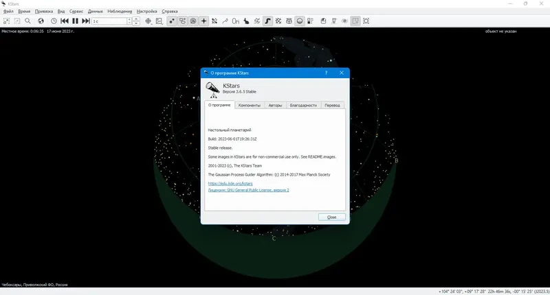 KStars — это бесплатное и открытое кроссплатформенное программное обеспечение для астрономов и любителей звездного неба. Оно позволяет точно моделировать ночное небо с любой точки Земли, в любую дату и время, предоставляя богатый каталог объектов и инструментов для исследования вселенной. Благодаря широкому функционалу, KStars подходит как для начинающих, так и для профессиональных астрономов, обеспечивая удобство наблюдений, планирования и астрофотографии.