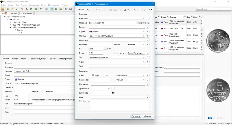 OpenNumismat позволяет создавать структурированные и детальные каталоги, что делает его незаменимым помощником для коллекционеров.