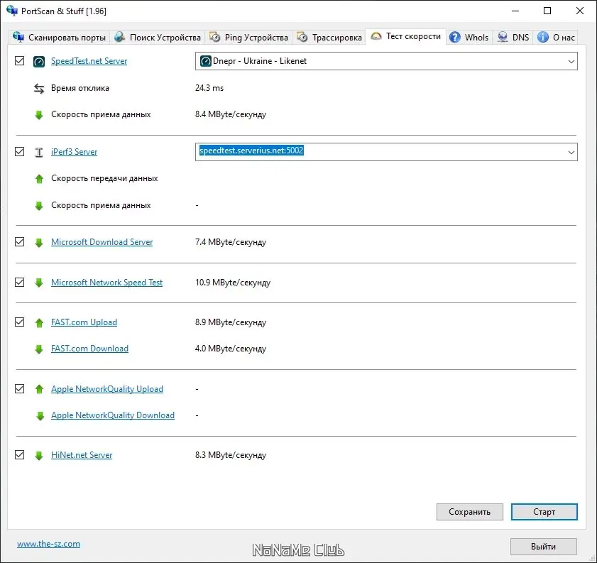 Для использования PortScan & Stuff достаточно запустить программу и выбрать необходимый режим сканирования. Вводите IP-адреса или диапазоны, которые нужно проверить, и нажимаете кнопку «Старт». После завершения сканирования программа отобразит список активных устройств, открытые порты и запущенные службы. Можно воспользоваться встроенной функцией проверки скорости интернета или выполнить трассировку маршрута до выбранного устройства. Также доступна возможность сохранить результаты для последующего анализа или экспорта в XML-формате. Портативная версия позволяет работать без установки, что удобно для быстрого использования на разных компьютерах.