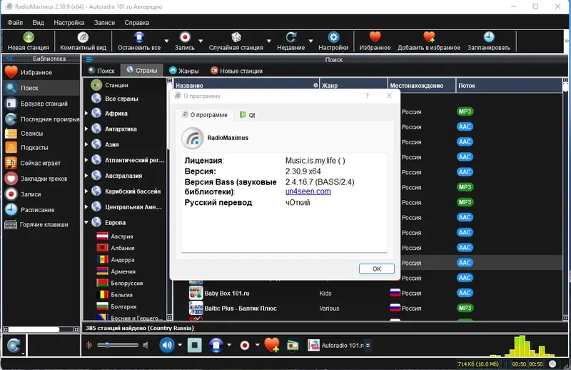 RadioMaximus — это универсальный проигрыватель для любителей радио, который позволяет не только слушать потоковое аудио со множества радиостанций по всему миру, но и записывать их в различные форматы. Простое управление, расширенные функции и возможность автоматической записи делают эту программу незаменимой для тех, кто ценит качество и комфорт в прослушивании радиоконтента. Благодаря встроенным инструментам, она отлично подходит для создания личной коллекции любимых треков и радиопередач.