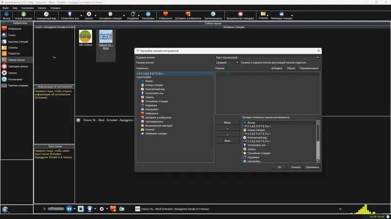 RadioMaximus представляет собой мощный инструмент для прослушивания и записи радиостанций с возможностью автоматической записи нужных треков. Программа поддерживает многоканальную работу, что позволяет пользователю одновременно слушать и сохранять несколько радиопередач. Интуитивно понятный интерфейс и расширенные функции делают работу с этим проигрывателем максимально комфортной, а встроенные средства поиска и добавления любимых станций обеспечивают быстрый доступ к любимому контенту. Помимо этого, программа включает поддержку обложек и текстов песен, что добавляет дополнительный уровень удобства при прослушивании музыки.