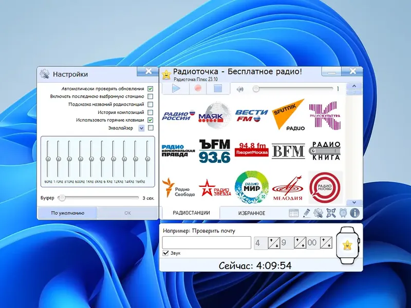 Радиоточка Плюс — это современный проигрыватель для прослушивания и записи интернет-радио на компьютере. Программа отличается удобным интерфейсом, отсутствием рекламы и дополнительных тулбаров, а также возможностью быстро находить любимые радиостанции. Благодаря встроенному определителю исполнителя пользователь всегда знает, кто исполняет текущий трек, что делает прослушивание максимально комфортным. Радиоточка предлагает широкий выбор онлайн-радиостанций различных жанров и направлений, что позволяет каждому найти музыку или новости по душе.