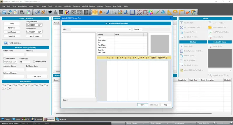 Sante DICOM Viewer Pro — это не просто очередной просмотрщик DICOM, а уникальное решение, созданное с нуля с использованием современных технологий программирования. В отличие от многих аналогов, основанных на открытых библиотеках, программа обладает собственной архитектурой, что обеспечивает её высокую стабильность и расширенные функции. Она поддерживает все основные модальности, такие как CT, MR, ультразвук, рентген, сцинтиграфия и другие, а также позволяет работать с разнообразными форматами изображений, включая JPEG, PNG и TIFF. В результате программа подходит для профессиональных медицинских учреждений, исследовательских центров и диагностических лабораторий.