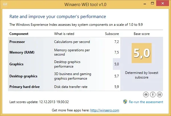 Описание Winaero WEI Tool