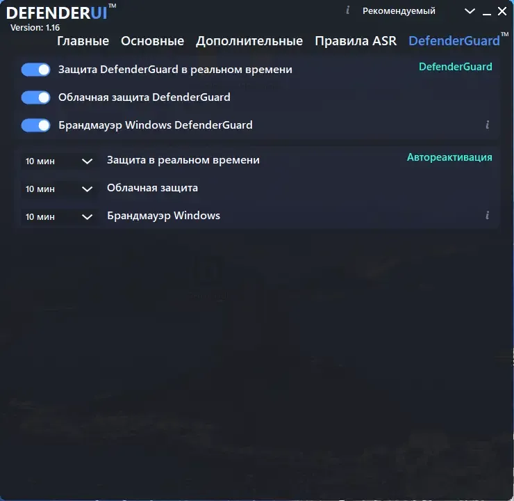 Для начала работы с DefenderUI необходимо скачать и установить программу на компьютер. После запуска интерфейс откроется в виде единой панели, где доступны все настройки безопасности Windows. В программе можно выбрать один из предустановленных профилей — рекомендуемый, интерактивный, агрессивный или настройки по умолчанию — и в пару кликов применить их. Также в DefenderUI легко управлять исключениями, обновлять базы данных и включать или отключать защиту в реальном времени. Для более опытных пользователей есть возможность настроить параметры вручную, что позволяет добиться максимальной эффективности защиты и удобства использования системы.
