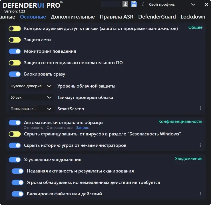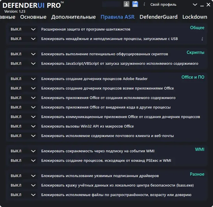 DefenderUI Pro выводит сообщения о состоянии системы и позволяет легко настроить параметры защиты. Она расширяет возможности стандартного Microsoft Defender, делая управление безопасностью более гибким и автоматизированным. Программа позволяет полностью автоматизировать управление WDAC и блокировками на уровне ядра, что значительно повышает уровень защиты. Благодаря удобному интерфейсу и встроенным мастерам настройки, настройка системы становится быстрой и понятной даже для неопытных пользователей. Кроме того, DefenderUI Pro включает функции, такие как запуск подозрительных файлов в безопасной среде Windows Sandbox и интеграцию с облачными сервисами для проверки приложений.