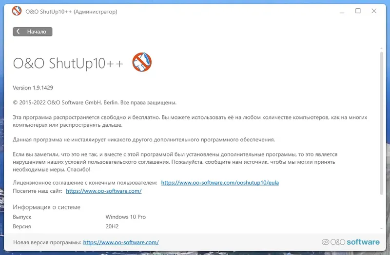 Как пользоваться O&O ShutUp