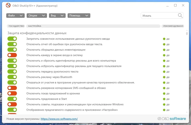 O&O ShutUp — это бесплатная программа, которая позволяет полностью контролировать настройки конфиденциальности в Windows 10. С помощью удобного интерфейса пользователь может отключать нежелательные функции системы, предотвращая передачу данных третьим лицам и повышая безопасность. Программа подходит как для опытных пользователей, так и для тех, кто хочет быстро настроить приватность без сложных процедур.