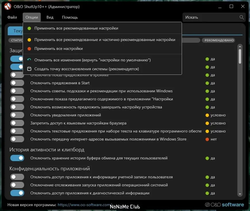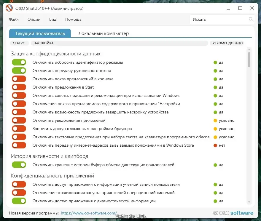 O&O ShutUp10 предоставляет пользователю полный контроль над настройками Windows 10, позволяя отключать функции слежения и передачи данных. Программа объединяет все важные параметры безопасности и конфиденциальности в одном удобном интерфейсе, что значительно упрощает процесс настройки. Это надежное решение для тех, кто ценит свою приватность и стремится снизить риск утечки личных данных, а также повысить безопасность системы.