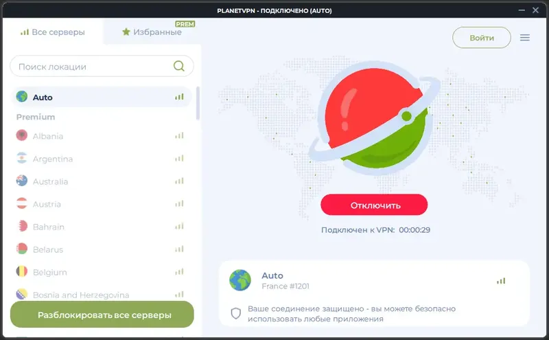 - Шифрует интернет-трафик для защиты от перехвата данных.
