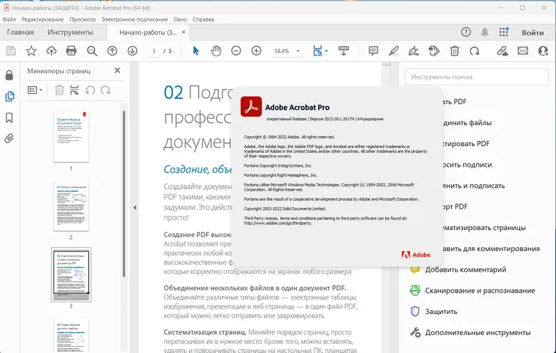 Adobe Acrobat — это мощный редактор и читалка PDF-файлов, который позволяет удобно создавать, редактировать, подписывать и управлять документами в формате PDF. Благодаря интеграции с облачными сервисами Document Cloud, программа обеспечивает доступ к файлам с любых устройств и в любой точке мира. Acrobat Pro идеально подходит для профессиональной работы с PDF, обеспечивая высокое качество и безопасность документов.