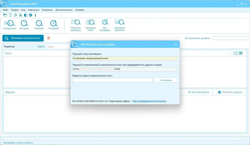 Для начала работы с программой необходимо установить ее на компьютер и активировать с помощью сгенерированного ключа. После запуска пользователь выбирает нужный режим проверки: отдельный файл, папку или сайт. В настройках можно задать параметры поиска, такие как длина шинглов и порог уникальности. После запуска анализа программа автоматически просматривает выбранные ресурсы, выделяет неуникальные фрагменты и формирует подробный отчет. В случае обнаружения заимствованных частей пользователь может сразу внести исправления и повторно проверить текст, чтобы убедиться в его уникальности.