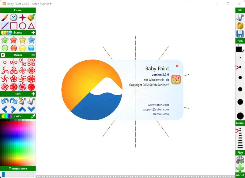 Baby Paint — это удобный и портативный редактор для детей, который позволяет легко и интересно раскрашивать картинки прямо на компьютере или с флешки. Простота интерфейса и яркий дизайн делают программу привлекательной для малышей и начинающих пользователей. Благодаря минимальному набору функций, она подходит для самых маленьких детей, развивая их творческие способности без лишних сложностей.