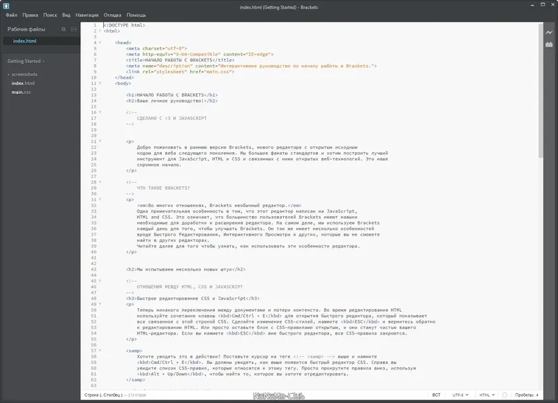 Brackets — это современный редактор исходного кода, разработанный компанией Adobe, который идеально подходит для веб-разработчиков. Он обеспечивает удобный интерфейс и богатый функционал для работы с HTML, CSS, JavaScript и другими языками программирования. Благодаря широким возможностям, таким как интеграция с браузером и расширяемость, программа значительно ускоряет процесс создания и редактирования веб-проектов, делая работу более эффективной и приятной.