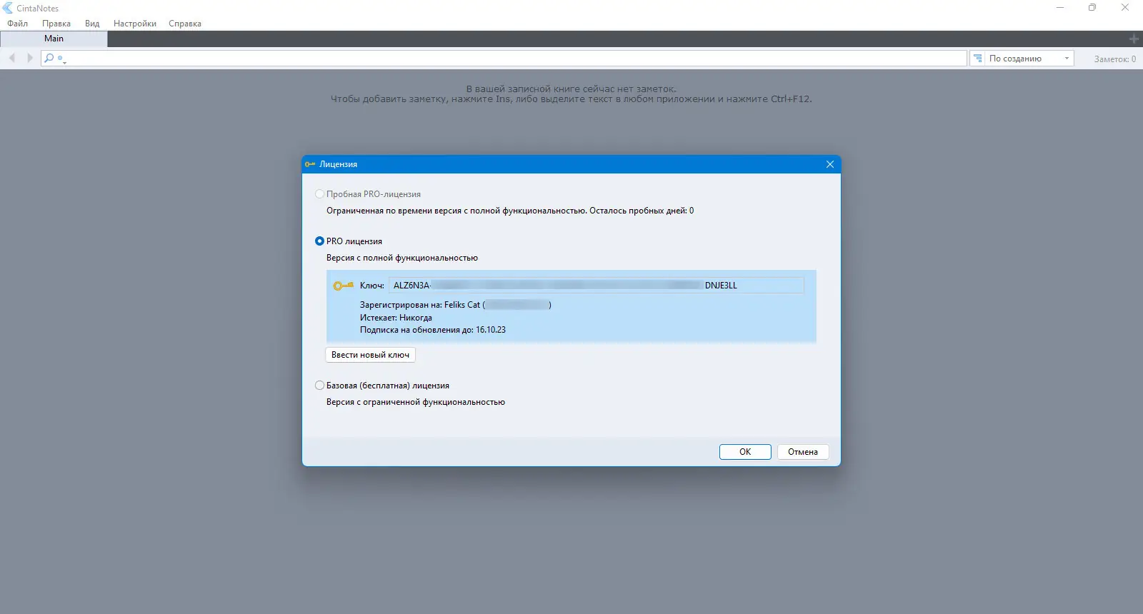 - Ограничения бесплатной версии по количеству секций и записных книг