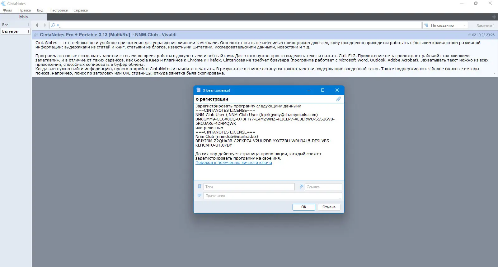 CintaNotes — это легкий и удобный редактор для ведения личных заметок, который помогает быстро сохранять, искать и организовывать информацию из различных источников. Благодаря простому интерфейсу и множеству функций, программа станет незаменимым инструментом для студентов, исследователей и специалистов, работающих с большим объемом данных и цитат. Она позволяет сохранять выдержки из статей, книг, блогов, а также управлять заметками с помощью тегов и секций.