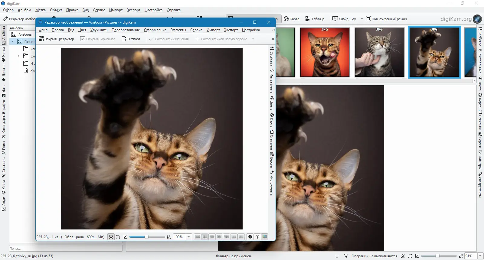 digiKam — это мощная и многофункциональная программа, которая отлично подходит для организации больших фотоколлекций. Она открытая и бесплатная, что делает её доступной для широкой аудитории. Благодаря поддержке Linux и Windows, программа универсальна и легко интегрируется в существующие рабочие процессы.