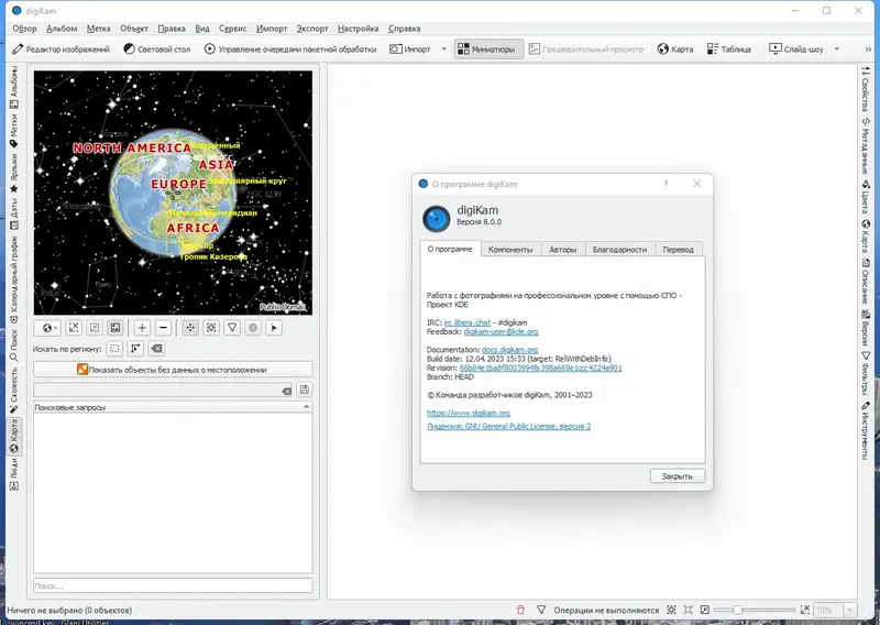 digiKam — это универсальный редактор и просмотрщик фото для Windows и Linux, который предлагает расширенные возможности по каталогизации и редактированию изображений. Программа поддерживает импорт фотографий, RAW-файлов и видео с фотоаппаратов, внешних накопителей и карт памяти. Она позволяет автоматически распределять файлы по альбомам, используя дату снимка, а также добавлять теги, оценки и заметки к каждому файлу для быстрого поиска. Благодаря интеграции с картами и геолокацией, можно просматривать альбомы на карте, что особенно полезно для путешественников и профессиональных фотографов. Весь функционал доступен бесплатно, и программу можно скачать на русском языке с официальной страницы.
