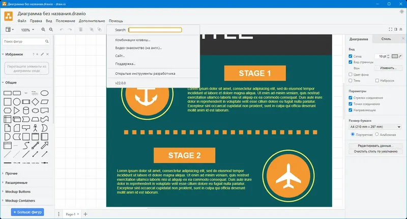 Для начала работы с Draw.io достаточно перейти на официальный сайт или скачать программу, после чего откроется редактор с уже готовыми шаблонами. В интерфейсе легко найти инструменты для добавления элементов, соединений и редактирования текста. Встроенные функции позволяют сохранять проекты в облаке или на локальном устройстве, а также экспортировать готовые схемы в различных форматах для дальнейшего использования.